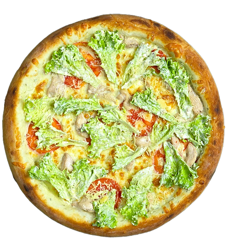 Сыр, соус Цезарь, соус белый, куриное филе, сыр Пармезан, помидор, лист салата, специи. Вес - 650 г