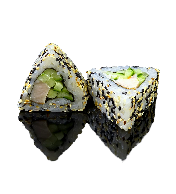 Нори, рис, микс кунжут, огурец, курица копченая, японский майонез. Количество - 8 кусочков. Вес - 197 г
