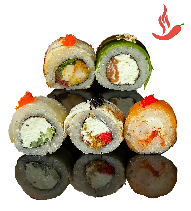 Состав: ролл "Черный дракон", ролл "Белый дракон", ролл "Красный дракон", ролл "Золотой дракон", ролл "Зеленый дракон". Количество - 40 кусочков. Вес - 1236 г.