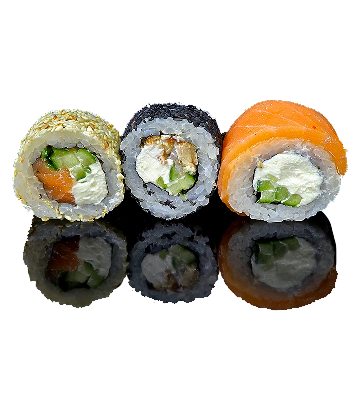 Состав: ролл "Фила с угрем", ролл "Филадельфия классик", ролл "Фила с лососем". Количество - 24 кусочка. Вес - 630 г.
